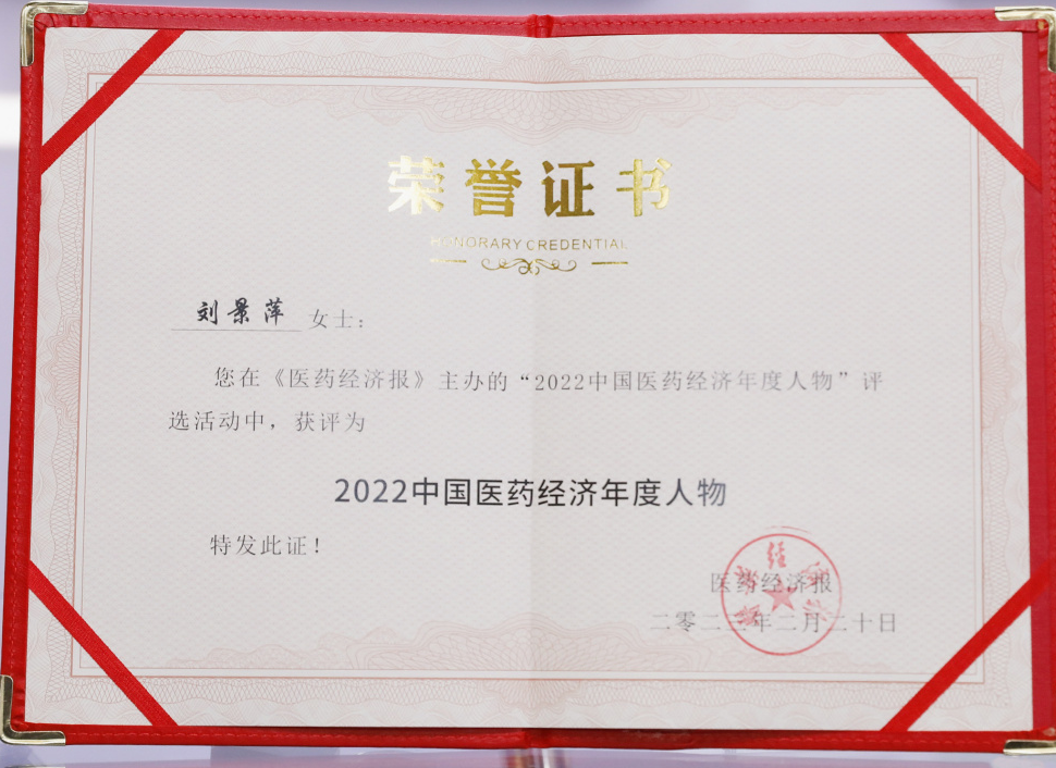 mg冰球突破药业集团董事长刘景萍当选“2022中国医药经济年度人物”